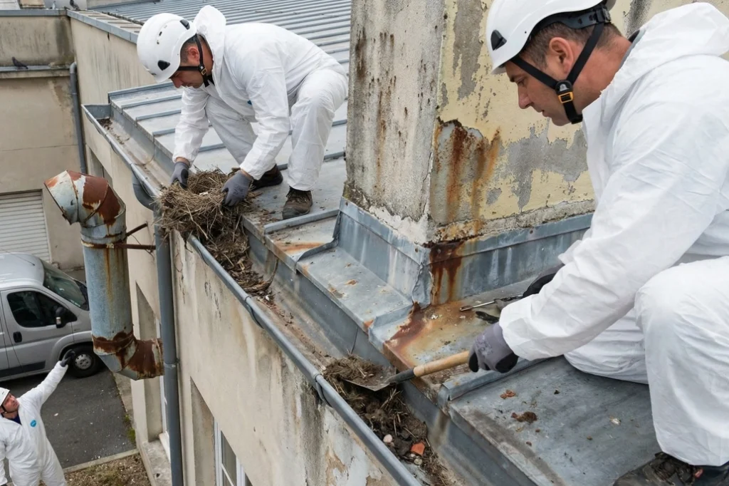 Bird damage extends beyond aesthetics. Acidic droppings corrode building materials, stain surfaces, and damage paint, roofing, and vehicles. Nest removal becomes necessary when bird nests block ventilation systems, gutters, and drainage pipes, leading to costly water damage and fire hazards from nesting materials in vents. Early intervention prevents expensive repairs and preserves your property’s structural integrity and value.