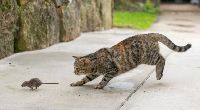 Cats naturally hunt mice and provide ongoing pest control, though complete elimination may take several months to achieve fully.