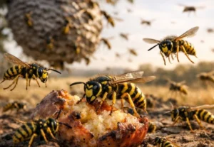 Wasps grow aggressive in late summer and autumn as colonies peak at 5,000-10,000 individuals. Unlike bees, they sting repeatedly without dying, making threatened wasps extremely dangerous.